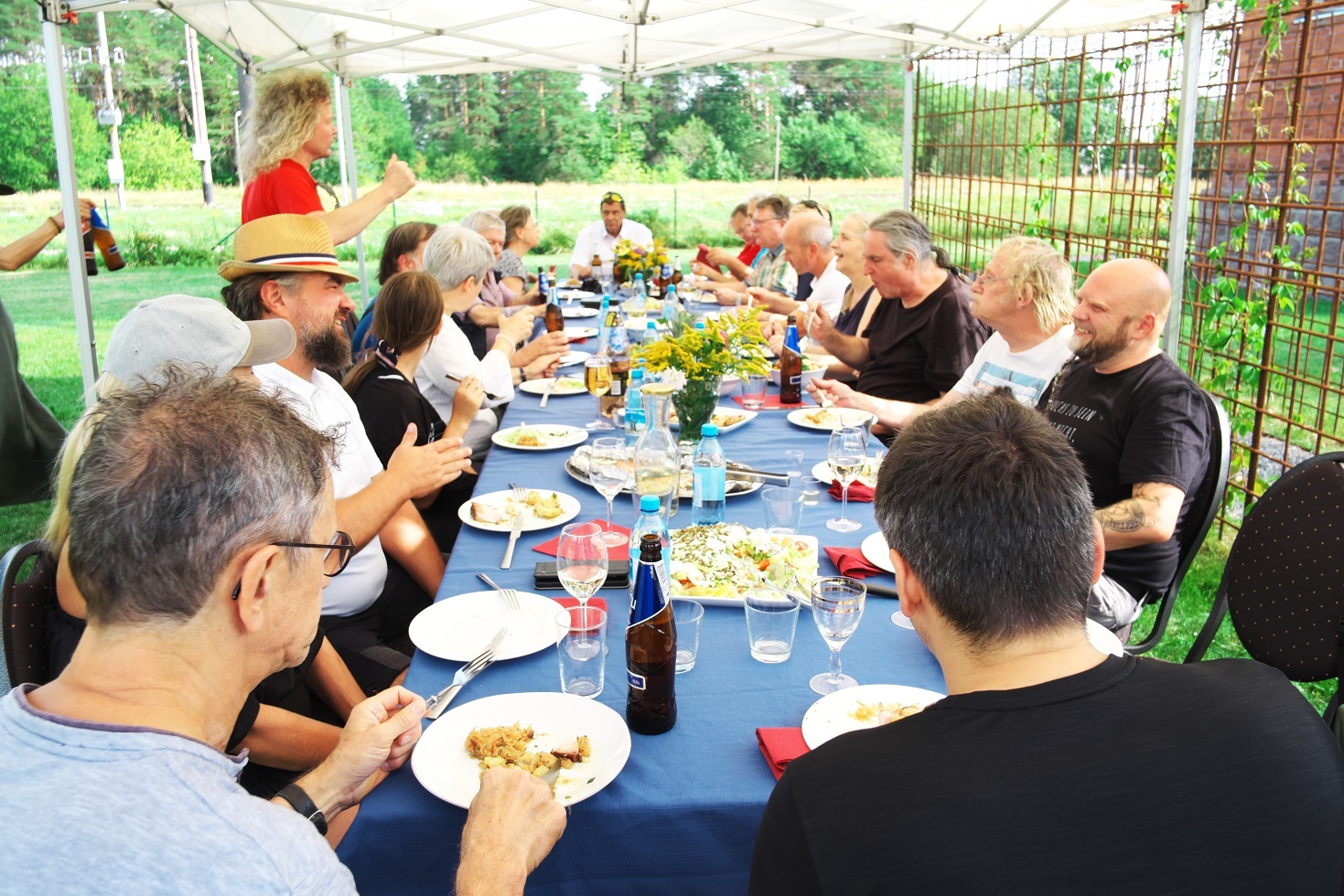 Teisel päeval toimetasime Tallinna tornide kallal ja siis siirdusime üle Keila ja Munalaskme Riisiperre. Sealne koosviibimine vältas tunde, sest sööke-jooke jagus. Lasime külalistel puu istutamise asemel muru külvata. Usun, et tunnen järgmissel hooajal iga tegelase lible ära, nimelise. Meelelahutuseks proovisime inimesed kõmpidega käima panna. No ei saanud keegi üle kahe sammu astutud. Sõber Erich tegi näitlikult pikad tuurid ja lausa jooksis neil karkudel. Selle päeva skooriks jäi 15 torni.